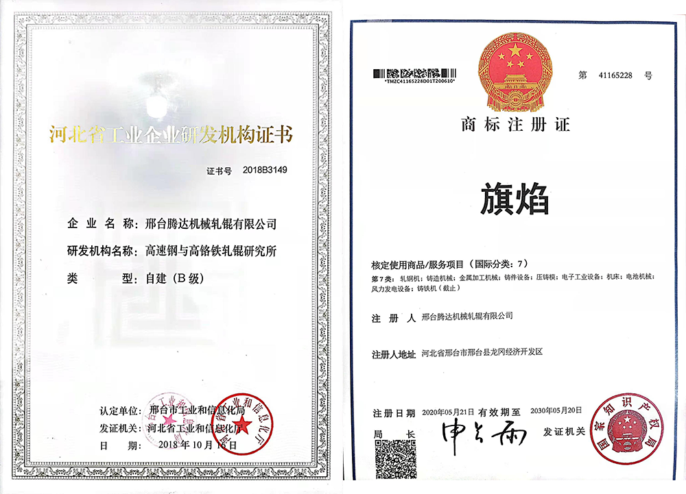 公司采用 GB/T1504-2008 標準生產,主要產品有冷硬鑄鐵軋輥,無限冷硬鑄鐵軋輥、球墨鑄鐵軋輥、高鉻鑄鐵軋輥、半鋼復合軋輥、離心復合軋輥、半高速鋼及高速鋼軋輥,可滿足不同軋機的應用,適用于各種棒材、線材、帶鋼和型材的軋制。公司產品銷往全國 20 多個省市自治區,公司擁有獨立的進出口權,海外市場涉及北美、南美及東南亞多個國家。公司屬于當地規模以上上企業,邢臺市納稅百強企業,環保治理 B 級企業,年產各類合金軋輥 10000 噸,銷售額近億元,年納稅額達 400 萬元。